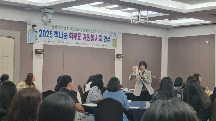 경상북도구미교육지원청(교육장 민병도)은 10월 17일 호텔 금오산 별관 1층 사파이어홀에서 구미지역 초・중 학교도서관 학부모자원봉사자 50여 명을 대상으로 책나눔 학부모자원봉사자 역량 강화 연수를 실시하였다.