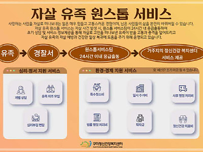 구미시는 7월부터 자살로 갑작스럽게 가족을 잃은 유족들의 고통을 신속히 완화하고 안정적인 일상 복귀를 위해 「자살 유족 원스톱 서비스」사업을 본격 운영하고 있다. 그동안 자살 유족들은 갑작스러운 사고 이후 장례 절차, 행정 처리, 심리적 고통까지 홀로 감당해야 하는 어려움이 컸다. 특히 초기 애도 과정에서 적절한 지원을 받지 못하면 장기적인 정신건강 문제로…