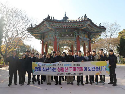 구미경찰서(서장 유오재)는 지난 20일 오후, 경찰서 인근 금오동산 금오정에서 ‘청렴 및 인권 실천의 날’ 행사를 개최했다. 이번 행사는 경찰의 윤리적 의무와 사회적 책임을 되새기며, 청렴과 인권을 실천하는 경찰문화를 확립하기 위해 마련되었다. 행사는 구미경찰서 청렴선도그룹 초심회 구성원 20여명이 함께 하였으며, 청렴 및 인권 존중의 중요성을 강조하는 다…
