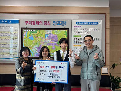천생중학교 학부모회(회장 류경미)는 12일 인동동 관내 저소득 가정 2가구에 연탄 876장(70만원 상당)을 직접 배달하며 따뜻한 이웃사랑을 실천했다. 이번 봉사에는 학부모와 학생 10여 명이 함께 참여해 연탄을 나르고 안부를 살피며 훈훈한 정을 나눴다. 류경미 회장은 “아이들과 함께 나눔의 기쁨을 느낄 수 있는 뜻깊은 시간이었다”고 전했다. 이경호 인동동…