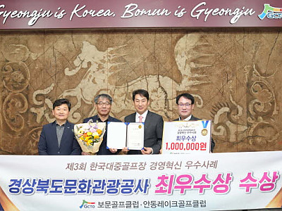경북문화관광공사(사장 김남일, 이하 공사)가 운영하는 보문골프클럽과 안동레이크골프클럽이 한국대중골프장협회가 주관하는 골프장 경영혁신 우수사례 공모에서 홍보마케팅 부문 최우수상을 수상했다고 25일 밝혔다.