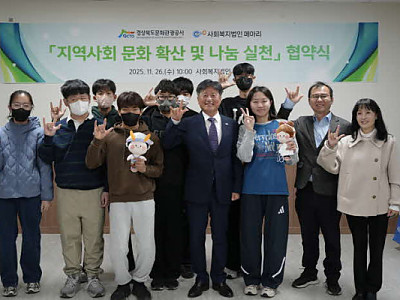 김남일 사장은 “이번 협약은 지역의 경계를 넘어 문화와 나눔으로 함께하는 의미 있는 동행의 출발점”이라며 “공사는 앞으로도 ESG 경영과 사회적 책임을 바탕으로 모두가 함께 누릴 수 있는 문화복지 실현에 앞장서겠다”고 밝혔다.