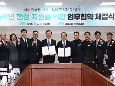 의성군(군수 김주수)은 9일 군청 본관 2층 영상회의실에서 LX한국국토정보공사(사장 어명소)와 ‘효율적인 행정지원을 위한 업무협약’을 체결했다고 밝혔다. 이번 협약은 행정 운영의 효율성 제고 및 군민 안전 강화를 목표로, 공유재산관리, 국토이용정보체계 고도화, 재난안전관리 플랫폼 구축사업을 원활히 추진하기 위해 마련됐다. 주요 협약 내용은 ▲공유재산의 체계…