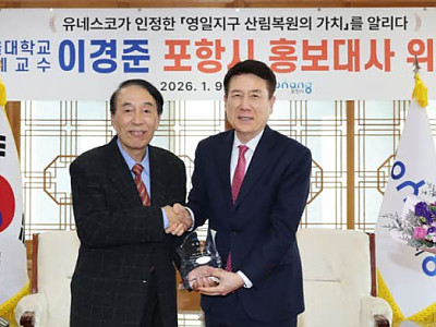 포항시는 9일 산림정책 분야 전문성 강화와 녹색도시 이미지 제고를 위해 이경준 서울대학교 명예교수를 포항시 홍보대사로 위촉했다. 이경준 명예교수는 우리나라 산림녹화 정책의 기획과 추진을 이끌어온 산림학계 최고 권위자로, 대한민국 산림녹화 기록물의 유네스코 세계기록유산 등재 추진위원장을 비롯해 한국산림정책연구회장 등을 역임하며 산림녹화의 역사적 가치와 성과를…