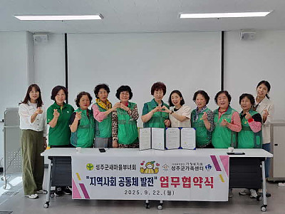 성주군새마을부녀회(회장 허정순)는 9월 22일(월요일) 창의문화센터 2층 요리교육장에서 다문화가정 및 읍면 새마을부녀회 30명이 참석해 업무협약 및 한국전통음식 만들기 체험의 시간을 가졌다. 이날 행사는 고추장을 비롯해 명절 대표 음식인 동그랑땡을 함께 만들어 봄으로써, 한국 전통 음식 전수 및 문화를 알리고, 다문화가정이 새로운 삶의 터전인 성주군에서 보…