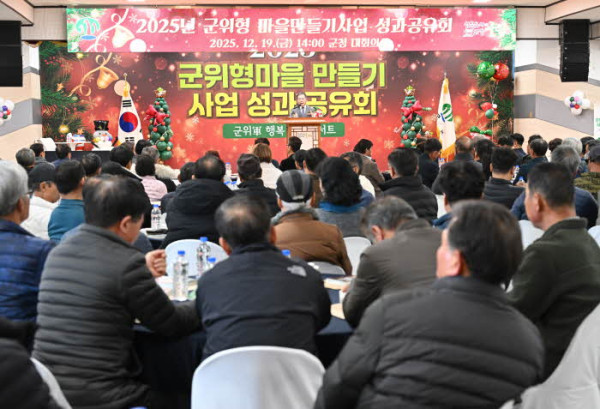 대구 군위군은 1219() 오후 2시 군청 대회의실에서 2025년 한 해 동안 추진한 군위형 마을만들기 사업의 성과를 공유하는 자리를 마련했다. 이번 성과공유회는 마을만들기 사업에 참여한 마을대표와 관계자 200여명이 참석한 가운데 지난 1년 간의 활동을 되돌아 보고 마을 발전의 경험과 노하우를 나누는 소통의 장으로 진행되었다.