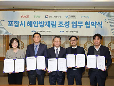 시는 11일 한국 코카-콜라, 환경재단, 남부지방산림청, 경상북도산림환경연구원과 ‘해안방재림 조성사업 업무협약(MOU)’을 체결하고 민·관 협력체계를 공식화했다.