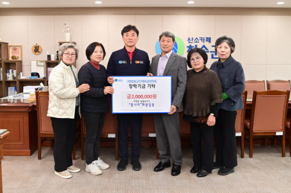 (재)청송군인재육성장학회(이사장 윤경희)는 18일 청송군 파천면 풍물동아리 ‘흥나리’ 회원들이 장학금 200만 원을 기탁했다고 밝혔다.