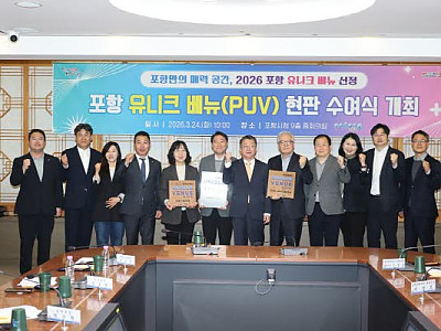 포항시는 24일 시청 중회의실에서 포항형 유니크 베뉴(Unique Venue) 현판 수여식을 열고 유니크 베뉴를 공식 지정하며 MICE 산업 경쟁력 강화에 나섰다.