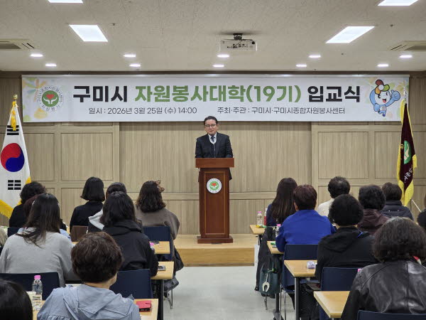 구미시는 지난 25일 구미시 새마을회 강당에서 구미시종합자원봉사센터(센터장 하준호) 주관으로 19기 구미시 자원봉사대학 입교식을 개최했다.