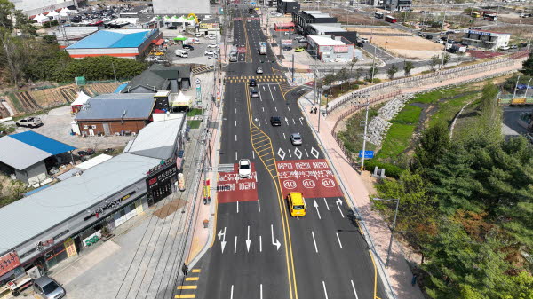 시는 총사업비 183억 원을 투입해 원호리·문성리·송림리를 잇는 2.56km 구간 도로 확장에 나섰다. 기존 보도를 일부 조정해 차로를 확보하고, 폭이 부족한 구간에는 인노천 사면을 활용한 데크 보도를 설치해 추가 차로를 확보했다. 구간별 유턴 공간도 새로 조성해 교통 흐름 개선에 힘을 실었다. 사업이 완료되면 출퇴근 시간대 정체가 크게 완화될 것으로 전망된다.