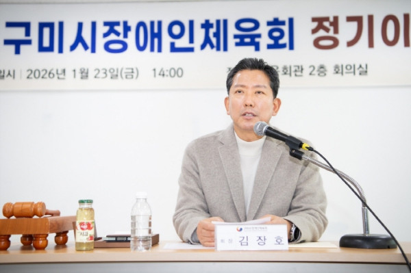 구미시장애인체육회는 지난 23일 구미시 체육회관에서 2026년 정기 이사회를 열고, 임원 인사와 함께 새해 사업 방향을 확정했다. 이날 이사회에는 김장호 구미시장을 비롯해 김형식 상임부회장 등 임원 20명이 참석했다.