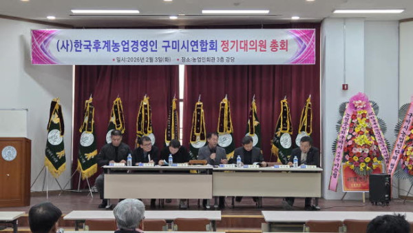 (사)한국후계농업경영인 구미시연합회는 지난 3일 구미시 농업인회관 3층 대강당에서 ‘2025년 정기대의원 정기총회’를 열고 지속 가능한 농업 발전을 위한 새로운 도약을 선언했다.