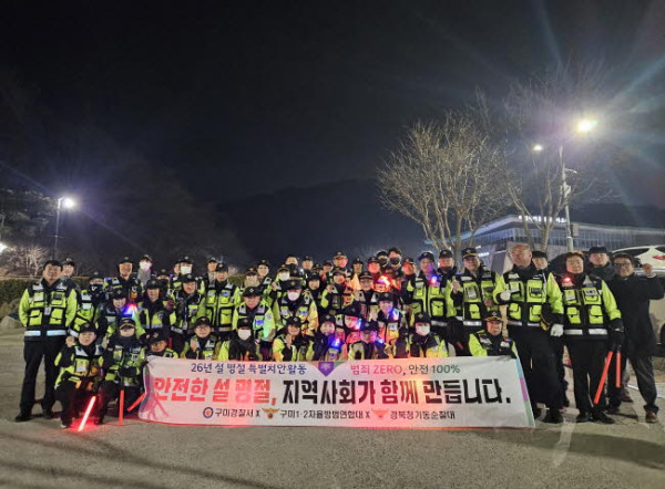 한편, 구미경찰서는 설 특별치안활동 기간 동안 금융기관, 금은방, 무인점포, 전통시장 등 취약지 중심의 가시적 순찰을 확대 운영하며 평온한 명절 분위기 조성에 총력을 기울이고 있다.
