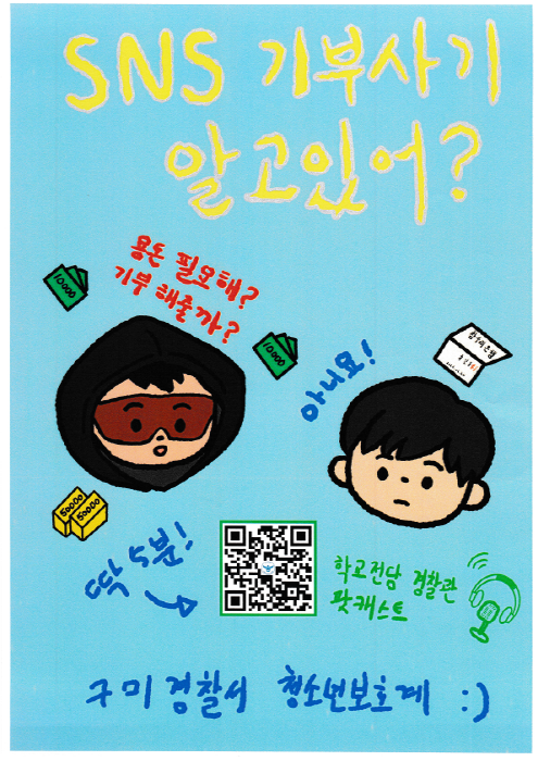 구미경찰서장은 “신학기는 환경 변화로 인해 청소년들의 범죄 노출 위험이 높아지는 시기인 만큼, 가정 내에서의 선제적 관심이 무엇보다 중요하다”며, “현재 송출 중인 기부 사기 예방 메시지를 비롯해 이번 팟캐스트가 청소년들에게는 안전한 가이드가 되고, 학부모들에게는 자녀와 깊이 소통하며 범죄를 예방하는 소중한 매개체가 되길 희망한다”고 밝혔다.