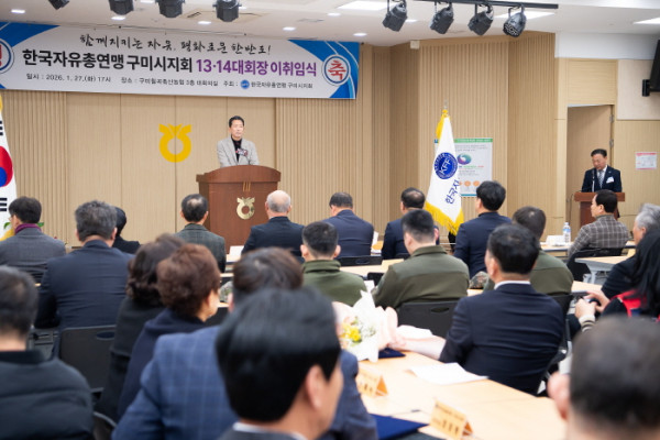한국자유총연맹 구미시지회는 지난 27일 구미칠곡축협 3층 대회의실에서 제13·14대 회장 이·취임식을 개최했다. 이날 행사에는 이동영 한국자유총연맹 경상북도지부 회장과 김장호 구미시장을 비롯해 회원과 내빈 등 200여 명이 참석했다.