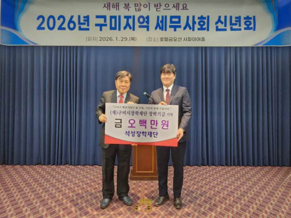 정성현 구미시 부시장은 “지역 인재 육성을 위해 따뜻한 나눔을 실천한 석성장학재단과 구미지역세무사회에 깊이 감사드린다”며 “고향사랑기부 활성화를 위한 지속적인 참여에도 감사드리며, 기탁된 장학금은 지역 학생들에게 실질적인 도움이 되도록 소중히 사용하겠다”고 말했다.
