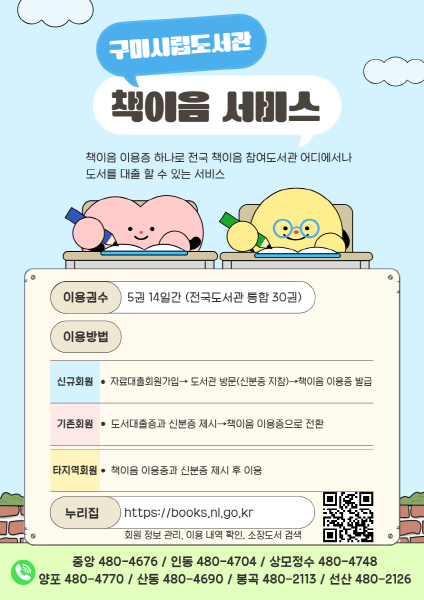 구미시, '책이음 서비스' 시행…전국 2,946개 도서관 하나로 이용