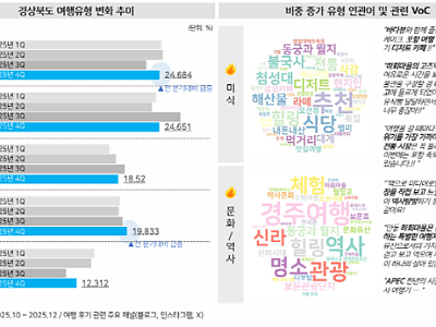 2025년 4분기 경상북도 관광 시장이 내·외국인 방문객의 고른 증가와 함께 미식·문화 중심의 소비 트렌드가 확산되며 내실 있는 성장을 거둔 것으로 나타났다.