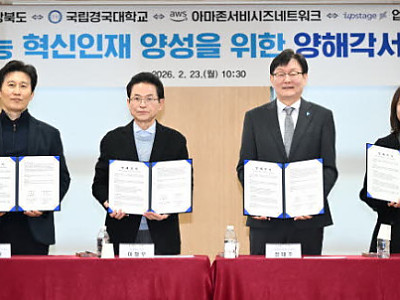 경상북도는 2월 23일 경북도청 사림실에서 국립경국대학교, 아마존웹서비시즈 코리아, 업스테이지와 함께 ‘인공지능 혁신인재 양성 및 공공·산업의 인공지능 전환 가속화’를 위한 4자 간 업무협약(MOU)을 체결했다. 이번 업무협약을 통해 글로벌 클라우드 기업인 아마존웹서비시즈 코리아, 국내 대표 인공지능 기업 업스테이지 및 지역 국립경국대학교와 손잡고 인공지능…