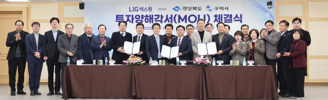 협약식에는 박배호 LIG넥스원부사장과 이철우 경상북도지사, 김장호 구미시장, 박교상 구미시의회 의장을 비롯해 도·시의원, 관계기관·단체장 등 30여 명이 참석해 케이(K)-방산 경쟁력 강화와 구미 국가산업단지 고도화를 위한 협력 의지를 공유했다.
