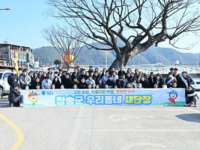 우리동네 새단장의 첫걸음으로 오는 12, 군청 공직자 300여 명이 참여해 청송읍 용전천 일대와 주요 도로변을 대대적으로 정비한다. 이를 통해 설 명절을 맞아 고향을 찾는 귀성객들에게 깨끗하고 쾌적한 고향의 이미지를 심어줄 예정이다.