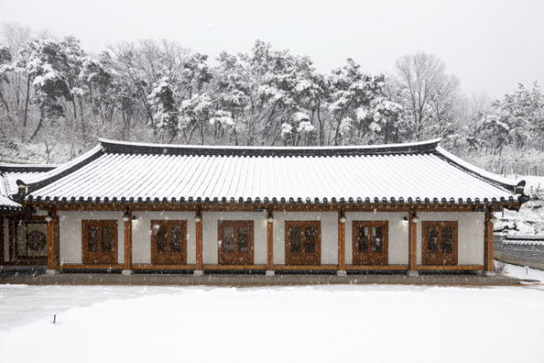 이날 오전부터 내리기 시작한 눈은 오후와 저녁까지 이어졌다. 전통 한옥 양식의 기와지붕과 마당, 주변 수목 위로 눈이 쌓이며 평소와 다른 모습이 연출됐다. 검은 기와 위에 쌓인 눈은 건물의 곡선을 더욱 또렷하게 드러냈다.