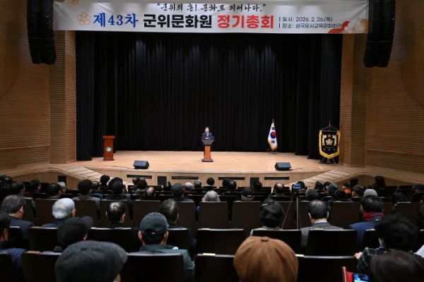군위문화원(원장 박세준)은 지난 26일 삼국유사교육문화회관 공연장에서 김진열 군위군수, 최규종 군위군의회 의장, 박창석 대구광역시의원 및 회원 300여명 등이 참석한 가운데 ‘제43차 정기총회’를 개최했다.