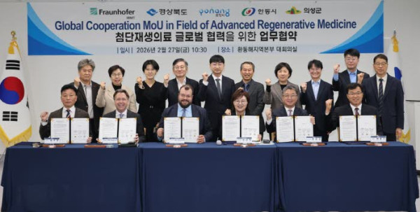 포항시는 27일 경상북도 동부청사에서 경상북도, 안동시, 의성군과 함께 독일 프라운호퍼 생체의공학 연구소(IBMT)와 ‘첨단재생의료산업 육성을 위한 공동 협력 양해각서(MOU)’를 체결했다.